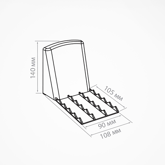 Большая пластиковая задняя опора на магнитном основании обеспечивает ее крепление на металлической полке, а ребристые выступы в нижней части удерживают плоские упаковки товара.