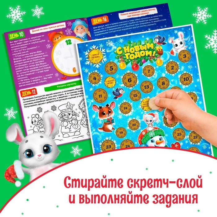 Книжка с наклейками «Адвент-календарь. Снеговик», со стирающимся слоем, формат А4, 24 стр.