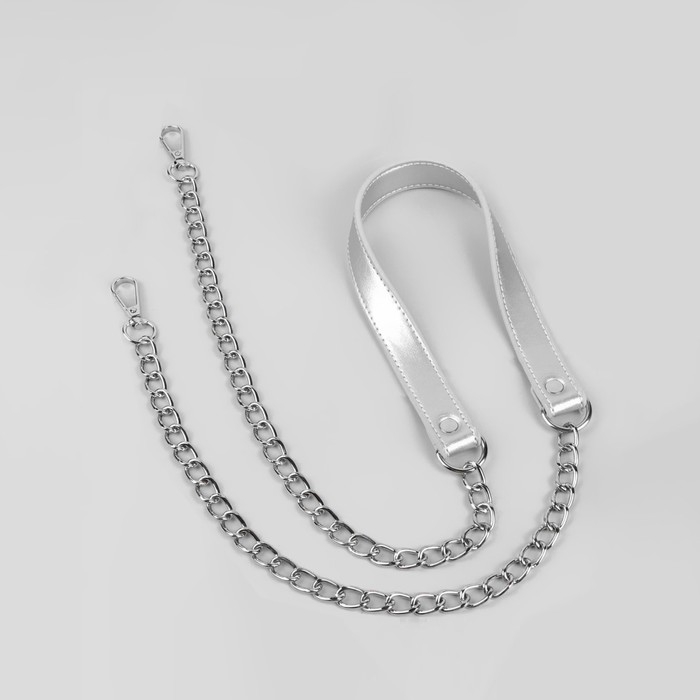 Ручка для сумки, с цепочками и карабинами, 120 × 1,8 см, цвет серебряный