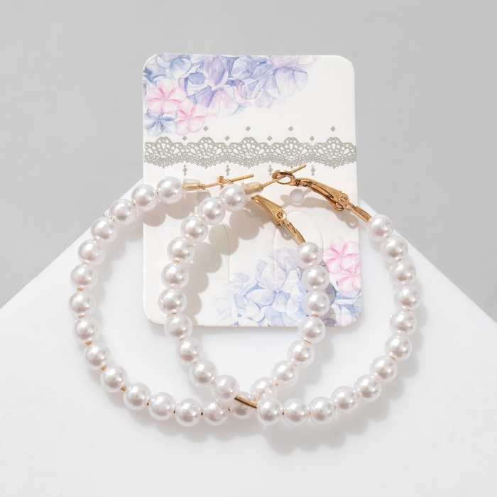 Серьги-кольца «Нежность жемчуга» кольца средние, цвет белый в золоте, d=5,5 см