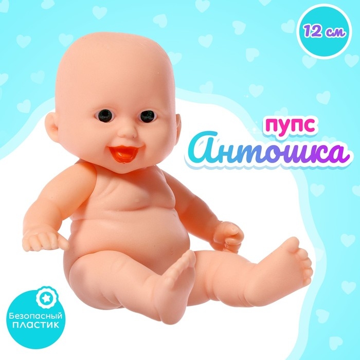 У куклы двигаются руки, ноги. Ребёнок придумает множество игр с пупсом и будет учиться заботе и ответственности. Рост куклы — 12 см. Её можно купать. Игрушка выполнена из пластика.