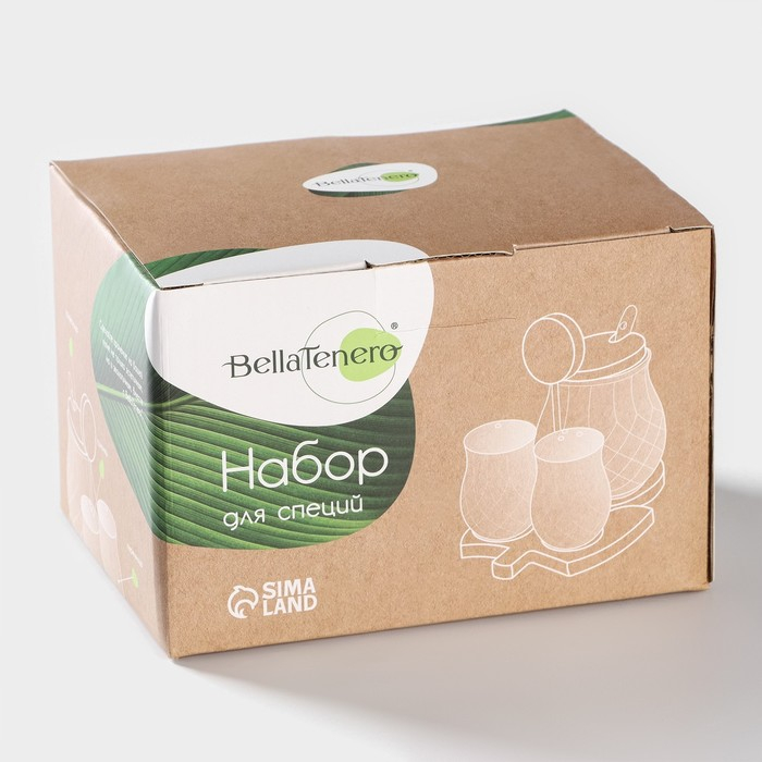 Набор для специй BellaTenero изготовлен из качественного фарфора. Кухонные изделия из фарфора отличаются прочностью и надёжностью, устойчивы к появлению царапин и резким перепадам температур. Благодаря оригинальному дизайну набор отлично впишется в интерьер вашей кухни и станет настоящей изюминкой при сервировке.