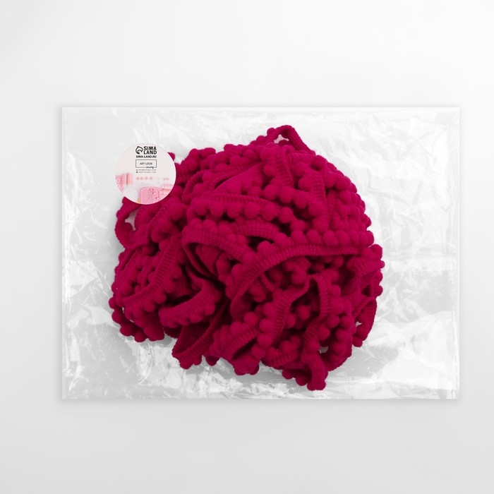 Тесьма декоративная с помпонами, 12 ± 2 мм, 9,1 ± 0,5 м, цвет красный