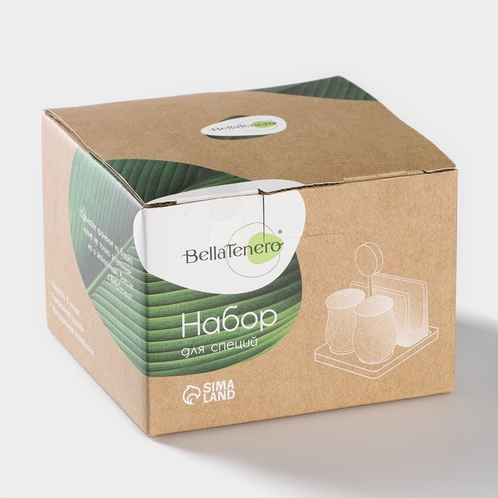 Набор для специй BellaTenero изготовлен из качественного фарфора. Кухонные изделия из фарфора отличаются прочностью и надёжностью, устойчивы к появлению царапин и резким перепадам температур. Благодаря оригинальному дизайну набор отлично впишется в интерьер вашей кухни и станет настоящей изюминкой при сервировке.