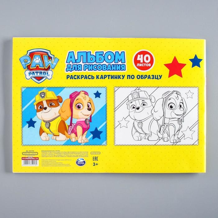Альбом для рисования А4, 40 листов 100 г/м², на скрепке, Щенячий патруль