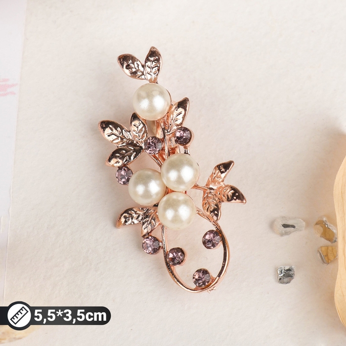 Брошь «Жемчужная ветвь» с росой, цвет бело-фиолетовый в розовом золоте