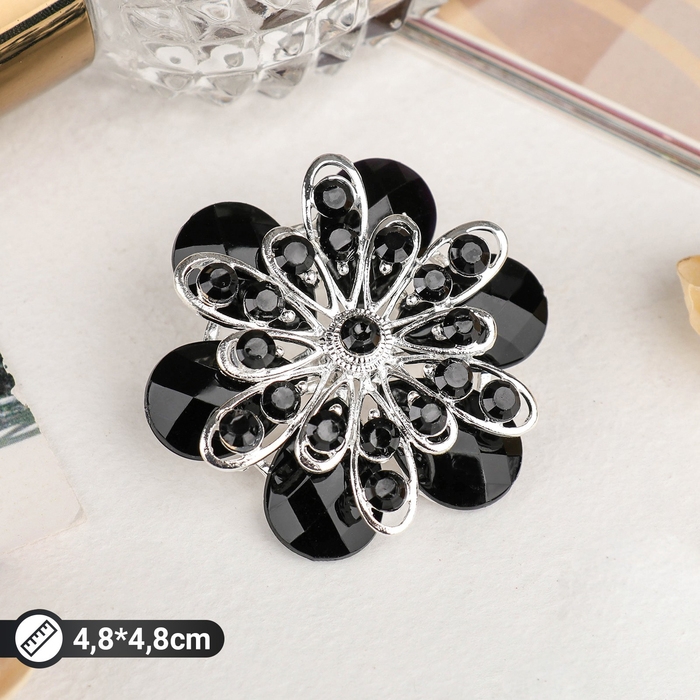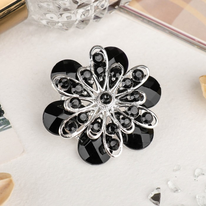 Брошь «Цветок» астры, цвет чёрный в серебре