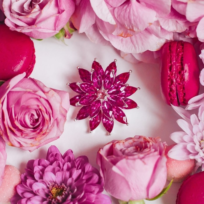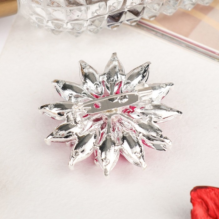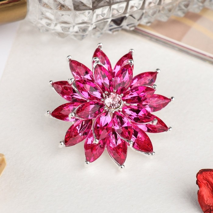 Брошь «Цветок» хризантема, цвет малиновый в серебре
