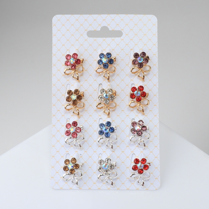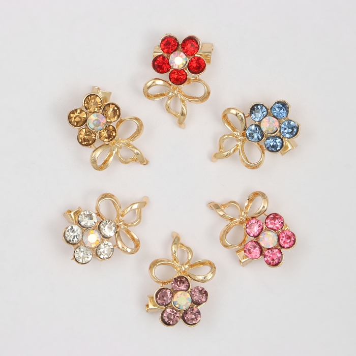 Брошь «Ассорти» цветы с бантом, цвет МИКС (неделимая фасовка 12 шт., цена за шт.)