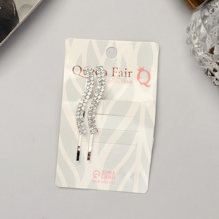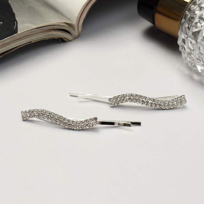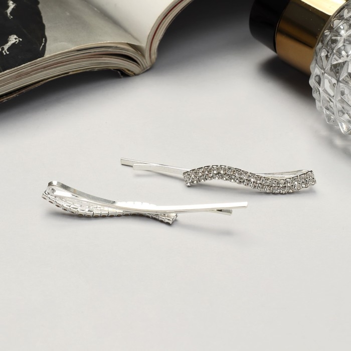 Невидимка для волос "Волшебный блеск" (набор 2 шт ) волна, 5,5 см, серебро
