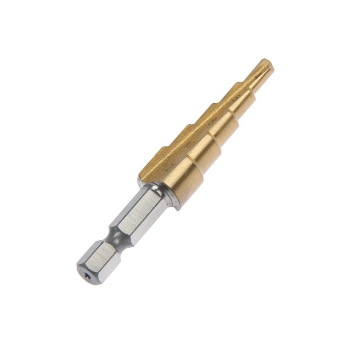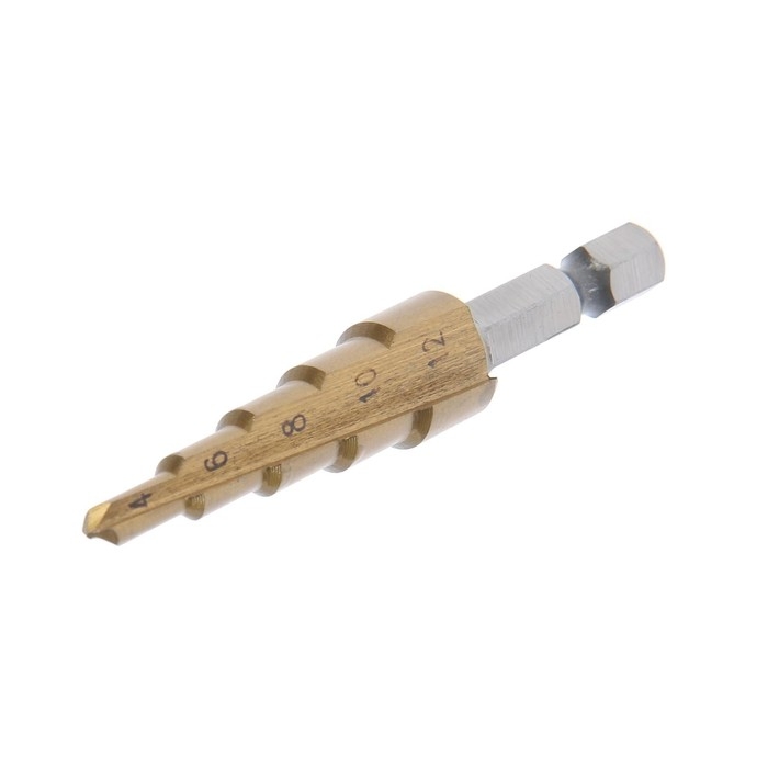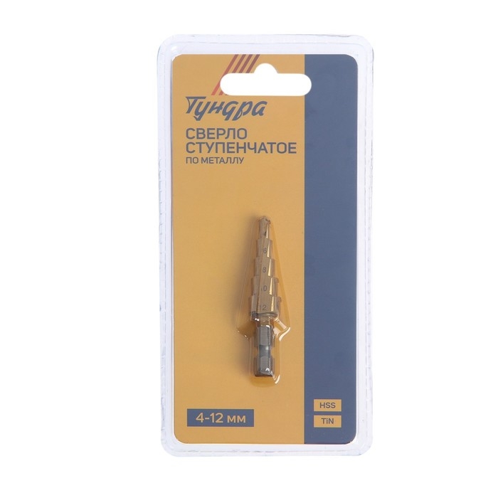 Сверло ступенчатое ТУНДРА, HSS, TiN, шестигранный хвостовик, 4 - 12 мм