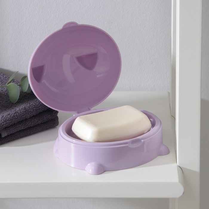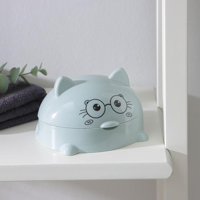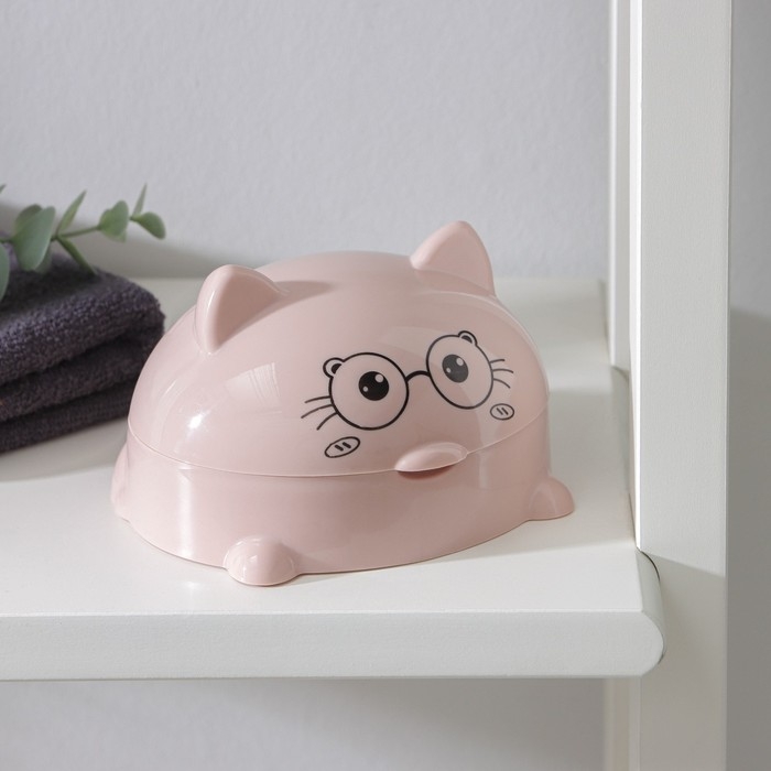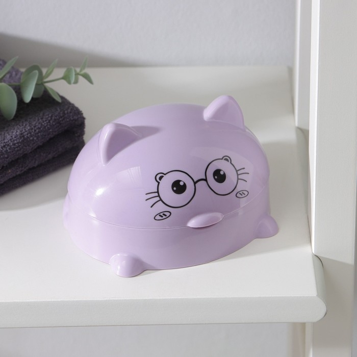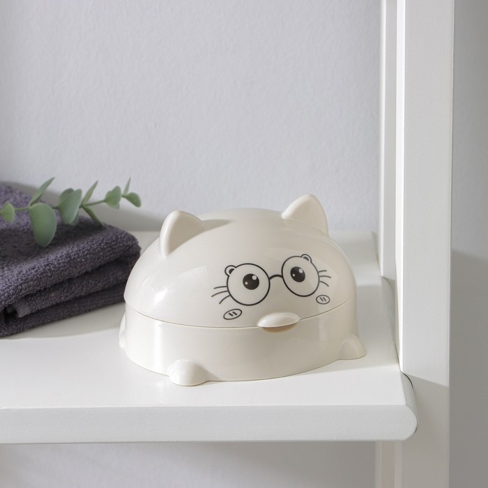 Мыльница с крышкой «Котейка», пластик, 11,5×11×8 см, цвет МИКС