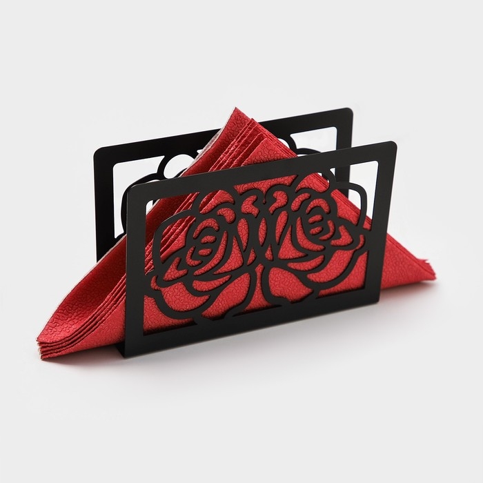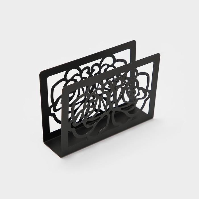 Салфетница Доляна «Цветы», 15×4×10 см, цвет чёрный