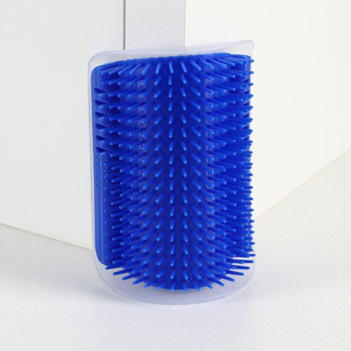 Массажер - чесалка на угол с кошачьей мятой для кошек, размер S, 13.5*9*5 см, синий