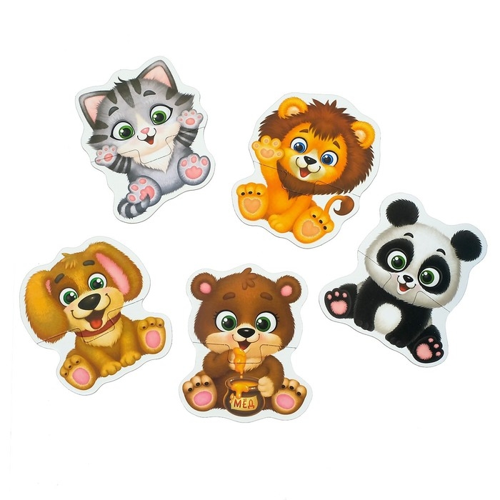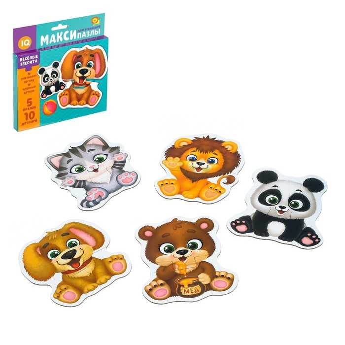 Макси-пазлы «Весёлые зверята», 5 пазлов, 10 деталей