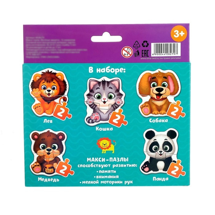Макси-пазлы «Весёлые зверята» — это 10 деталей, из которых ребёнок соберёт 5 разных пазлов и познакомится с животными. Макси пазлы помогут развить усидчивость, координацию и мелкую моторику рук, а также научат находить связь между частью и целым.