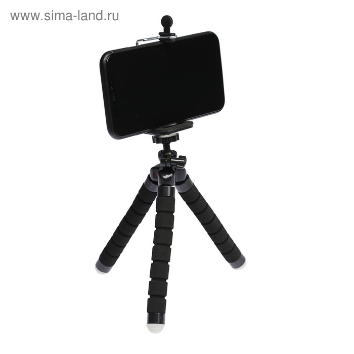 Штатив-тренога Luazon настольный, для телефона шириной до 7 см, гибкие ножки, высота 17 см, чёрный