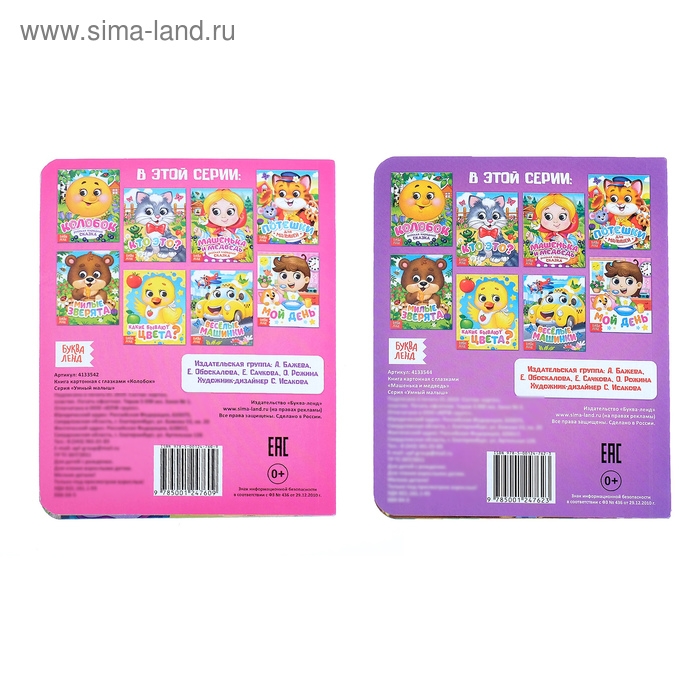 Книги картонные с глазками «Русские народные сказки», 2 шт. по 10 стр.