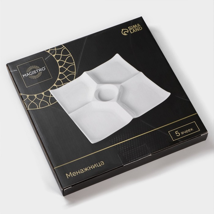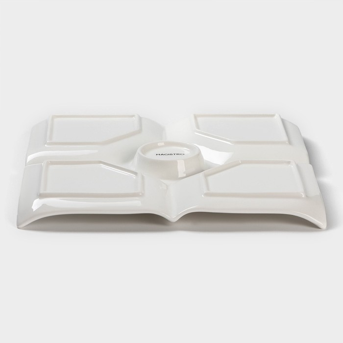 Менажница фарфоровая 5 ячеек Magistro «Бланш», 25×25 см, цвет белый
