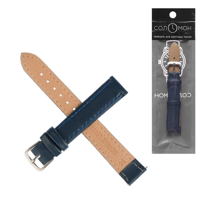 Ремешок для часов "Соломон", 16 мм, натуральная кожа, l-20 см, темно-синий