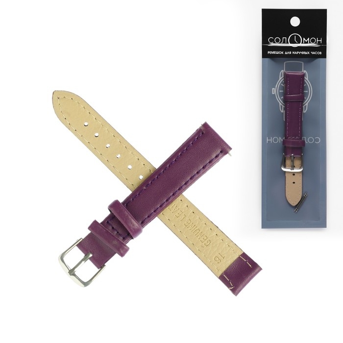 Ремешок для часов "Соломон", 16 мм, натуральная кожа, l-20 см, сиреневый