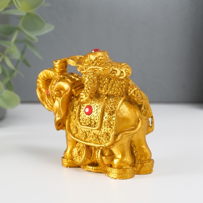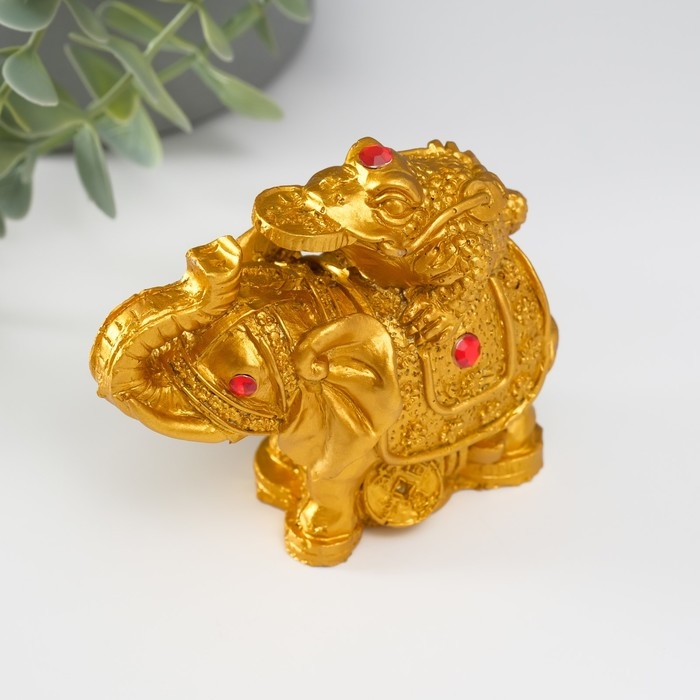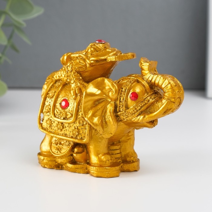 Нэцке полистоун бронза "Слон с денежной жабой на спине" 7,5х9,3х5,2 см