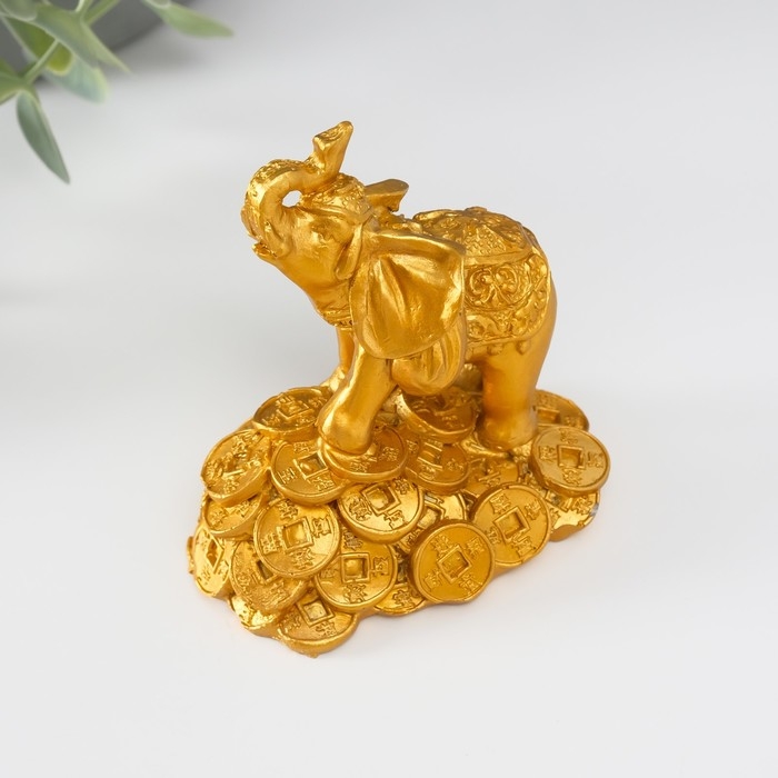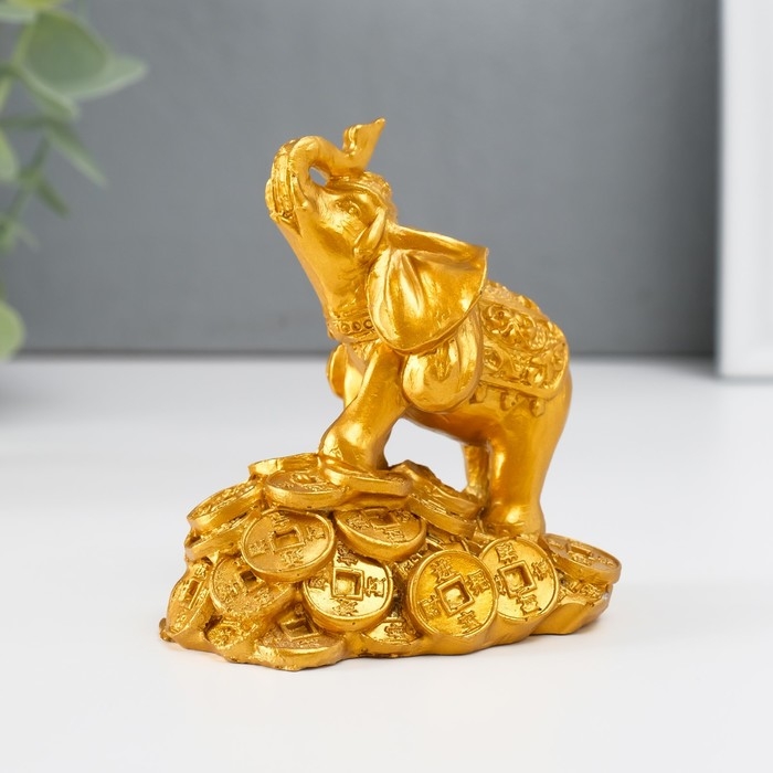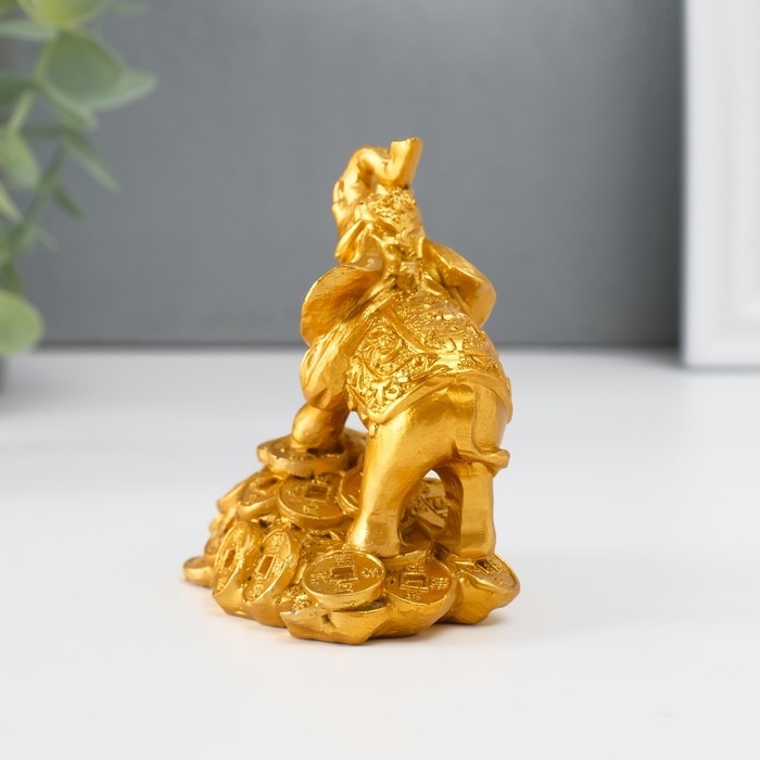 Нэцке полистоун золото "Слон на горке монет" 8,7х7,5х5,4 см