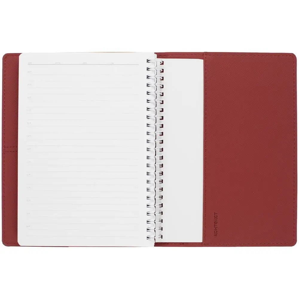 Ежедневник с блоком на пружине в твердой обложке, выполнен из материалов Nice Touch, Soft Touch и Soft Touch Ultra красный.