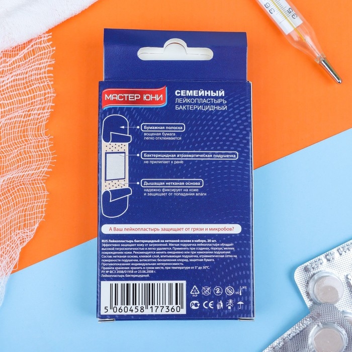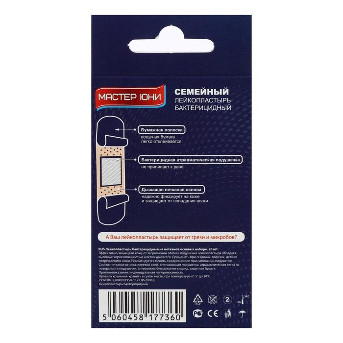 MASTER UNI Лейкопластырь бактерицидный "Семейный" на нетканной основе 20 шт