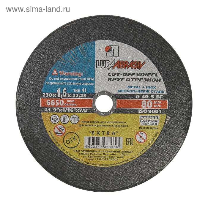 Круг отрезной по металлу+нерж.стали "Луга", A 40 S BF 80, 14 А БУ, 230х1.6х22 мм