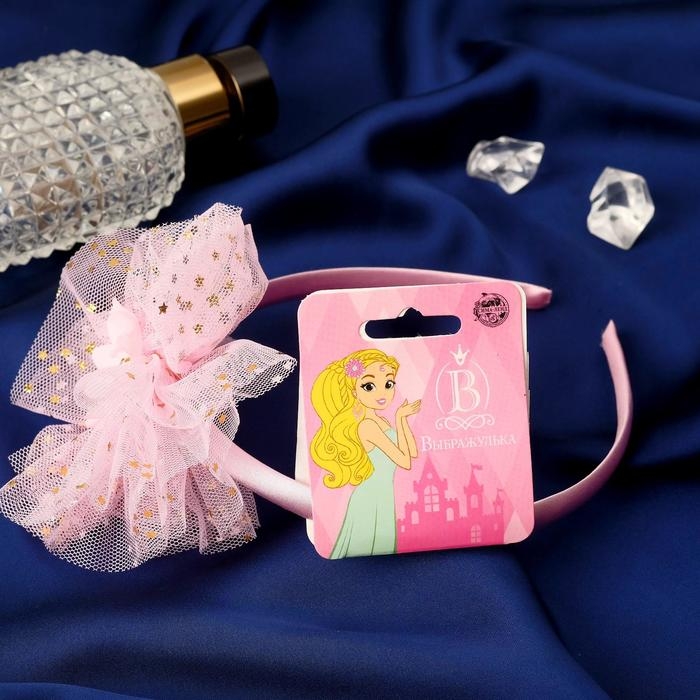Ободок для волос "Малышка" 1 см звёзды, цветок, розовый