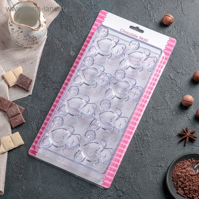 Форма для конфет и шоколада Доляна «Сердечко», силикон, 21×10 см, 15 ячеек (2,7×2,8 см), цвет МИКС