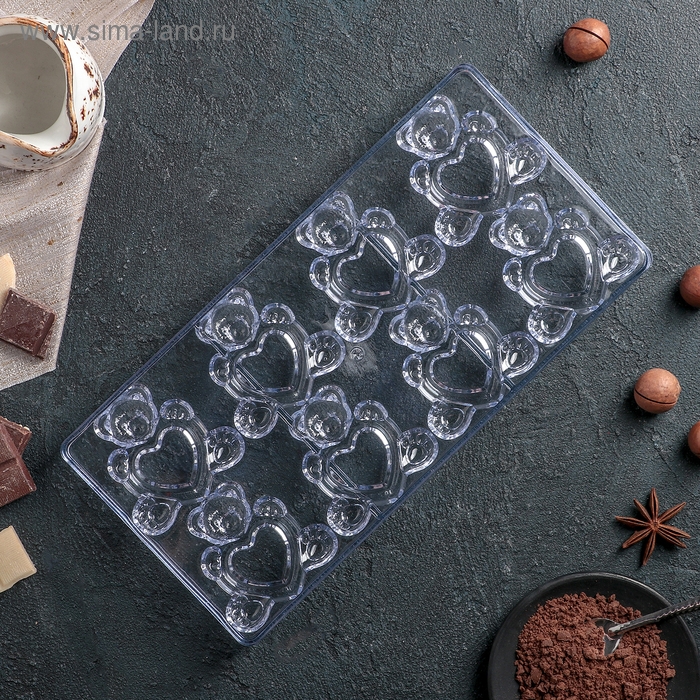 Форма конфет и шоколада «Влюблённые мишки», 28×14 см, 8 ячеек, цвет прозрачный