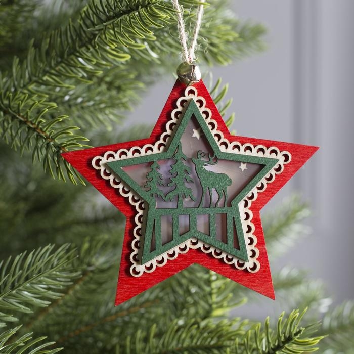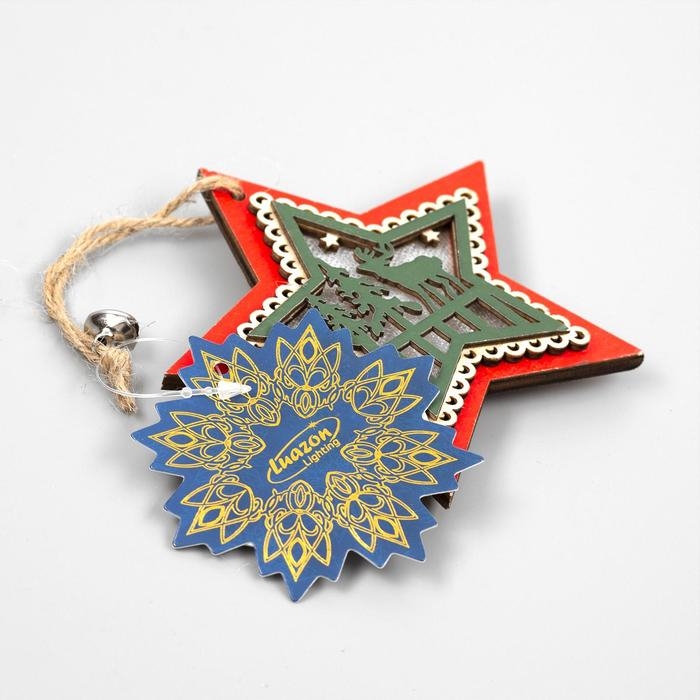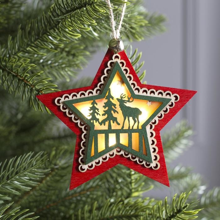 Ёлочная игрушка «Красная звезда с оленем», от батареек, свечение тёплое белое