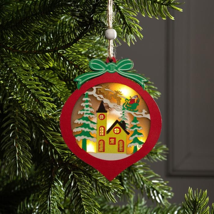 Ёлочная игрушка «Новогодний шар», от батареек, свечение тёплое белое