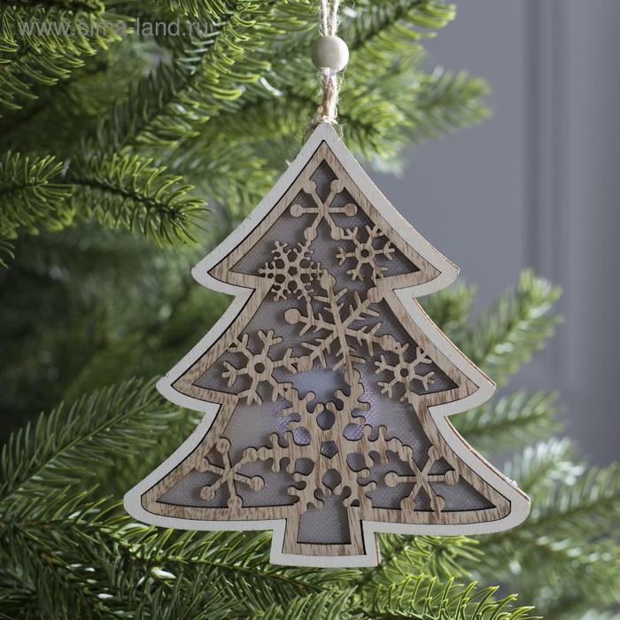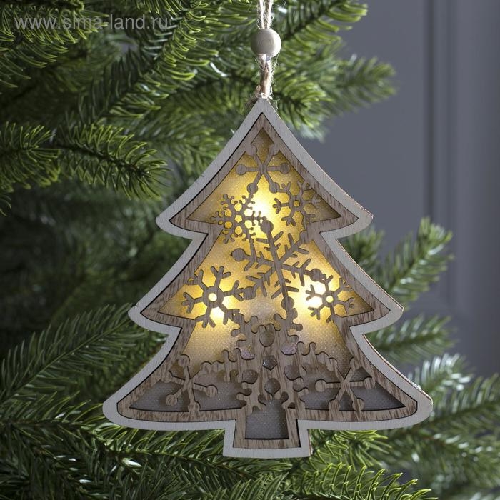 Ёлочная игрушка «Ёлочка в снежинках», от батареек, свечение тёплое белое