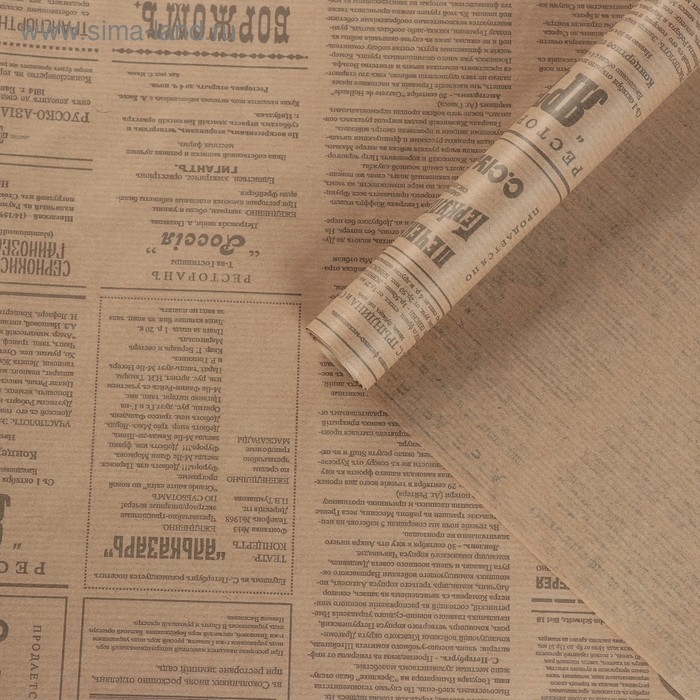 Бумага упаковочная крафт "Винтажная газета", серая, 0,72 х 10 м, 40 гр/м2