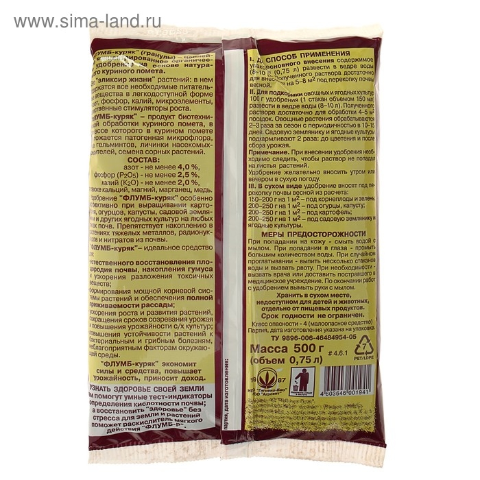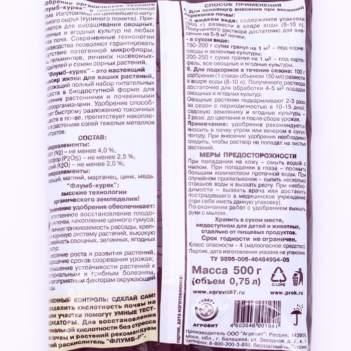 Гранулы для восстановления плодородия почвы "Флумб куряк", 500 г