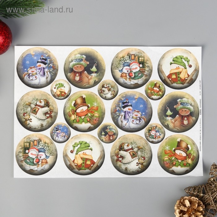 Декупажная карта "Снеговички" формат А4, плотность 45г/м23