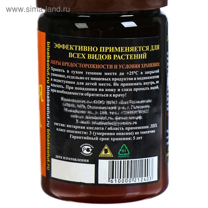 Природный стимулятор роста янтарная кислота содержится в янтаре, который представляет собой окаменелую за многие тысячелетия смолу древних сосен. Также она присутствует в не созревших ягодах, репе, сахарном тростнике и т. д. Так как янтарная кислота не токсична, ее применение помогает избавляться от вредного техногенного влияния на почвенные структуры, не загрязняя дополнительно действующим веществом. Препарат благотворно влияет на активность микрофлоры почвы, обеспечивая интенсивную биологическую переработку минеральных удобрений.