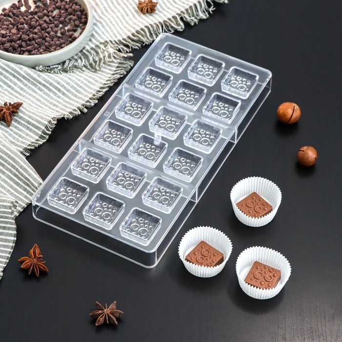 Форма для конфет и шоколада KONFINETTA «Пористый шоколад», 33×16,5×2,5 см, 18 ячеек 3×3×1 см, цвет прозрачный