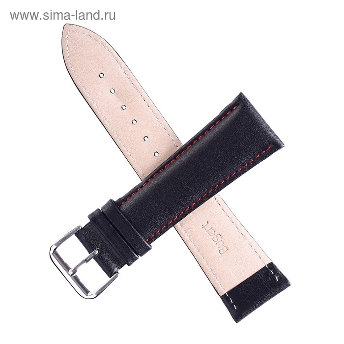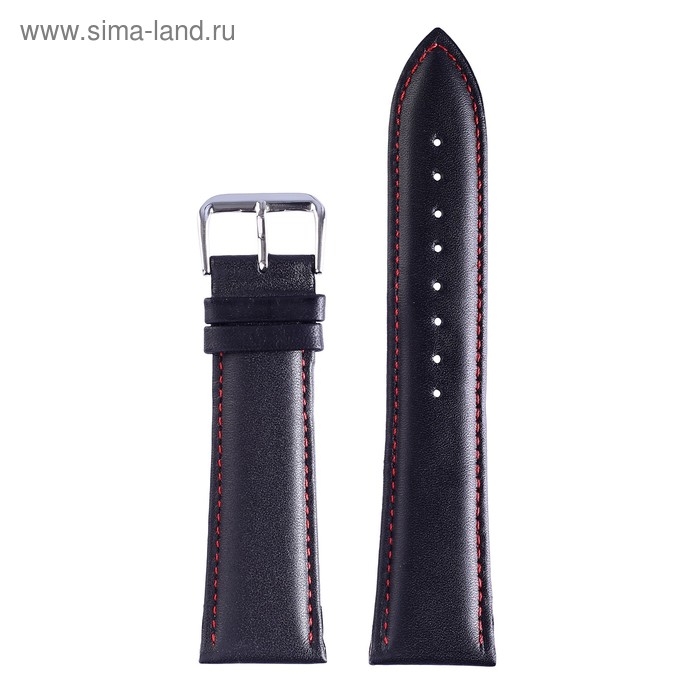 Ремешок для часов кожаный "Соломон" 20 мм, l-20 см, черно-красный