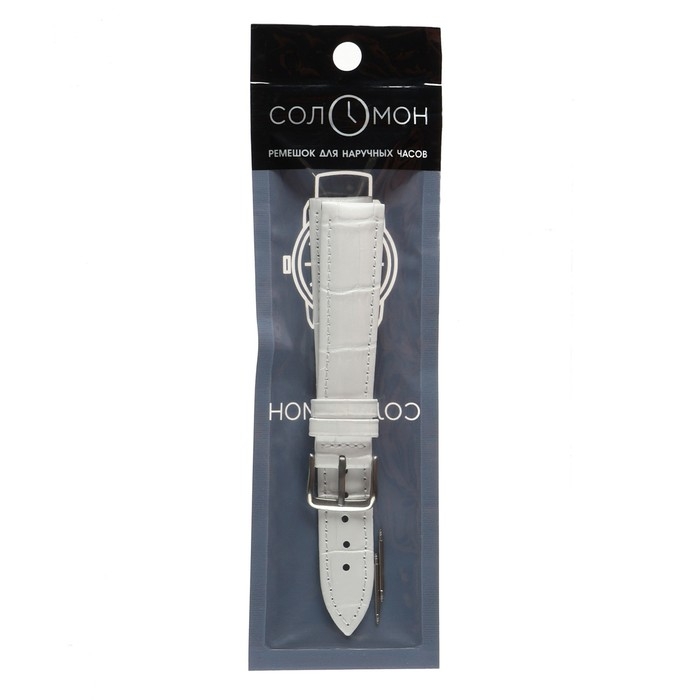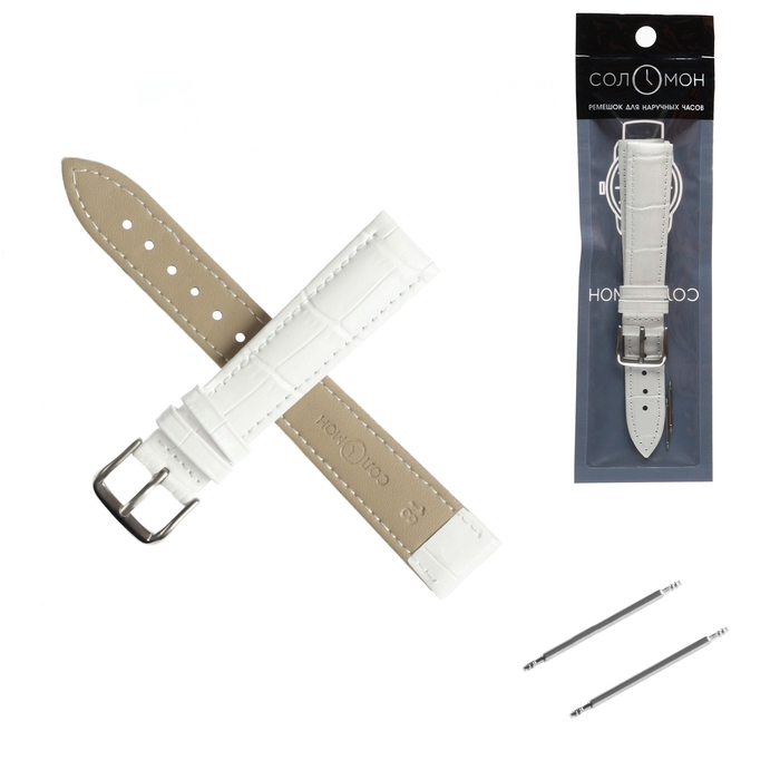Ремешок для часов кожаный "Соломон" 18 мм, l-20 см, белый