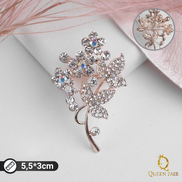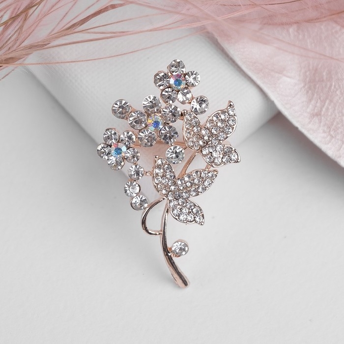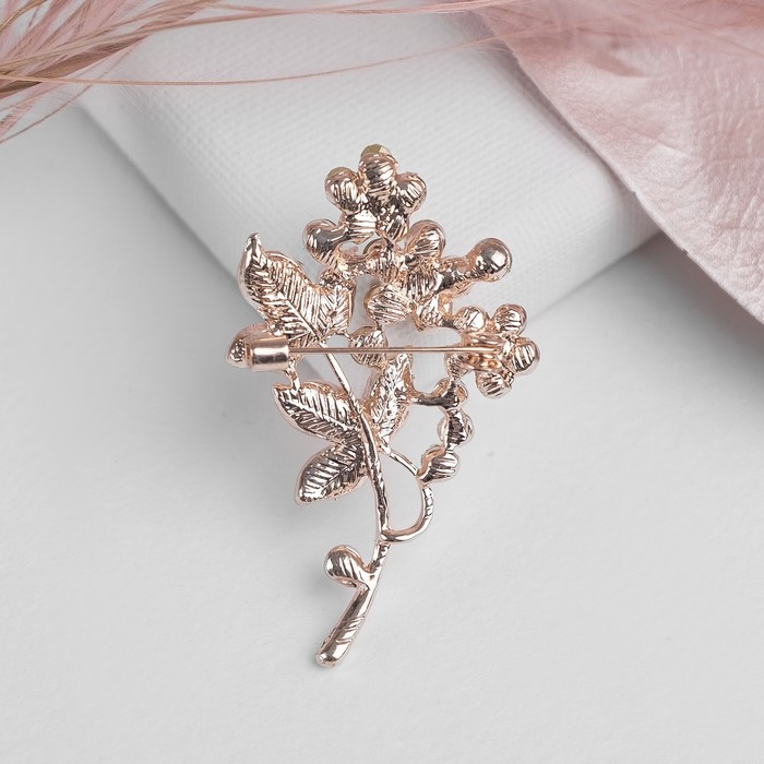 Брошь «Цветочная веточка», цвет белый в золоте