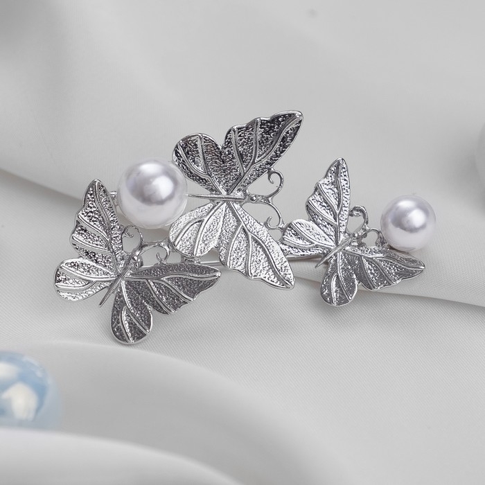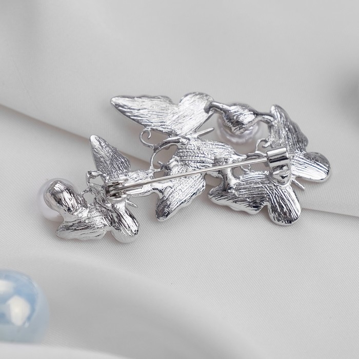 Брошь «Бабочки» трио с жемчужинами, цвет белый в серебре