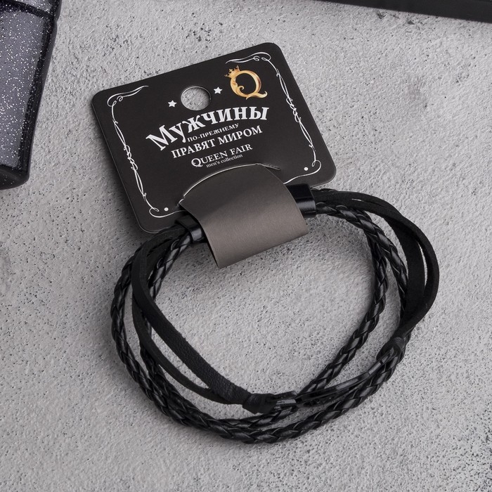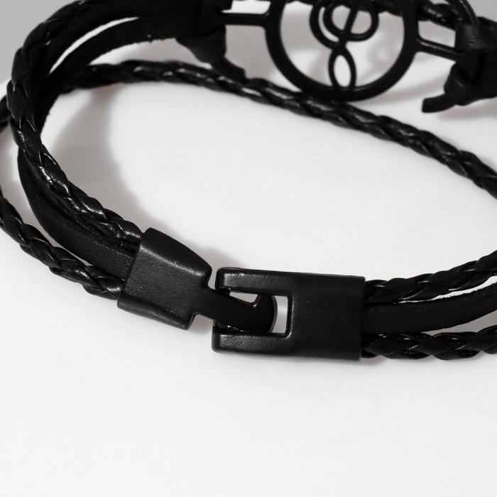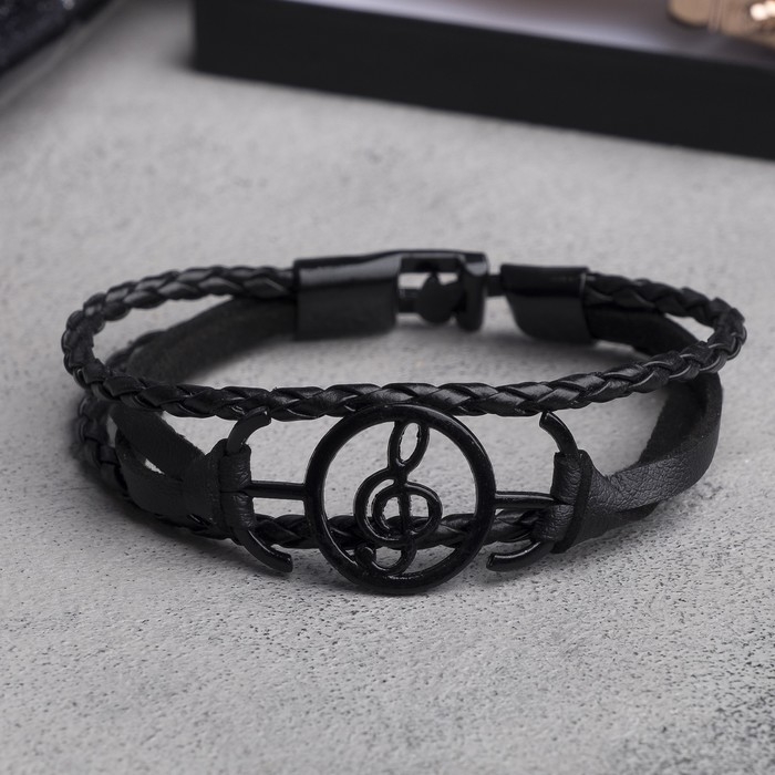 Браслет кожа «Коса двойная» нота, цвет чёрный в чёрном металле, L=21 см