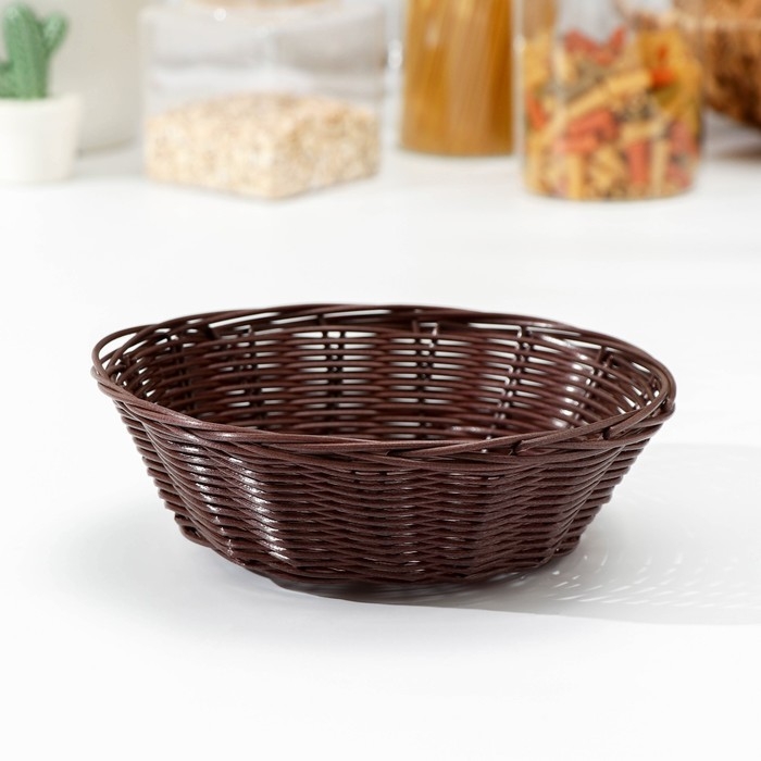 Корзинка для подачи Доляна «Плетёнка», 25×18×6,5 см, цвет коричневый