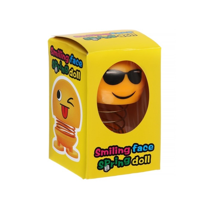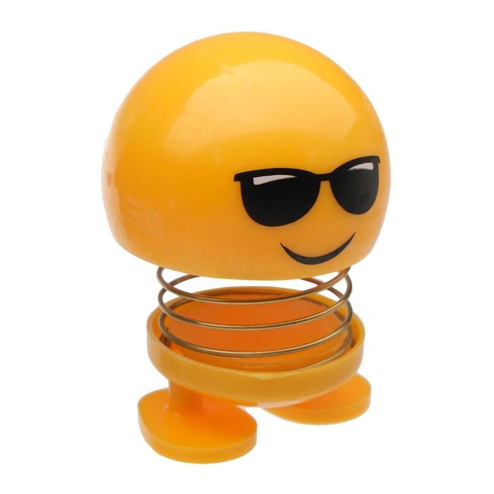 Смайл на пружинке, на панель в авто, в очках, желтый