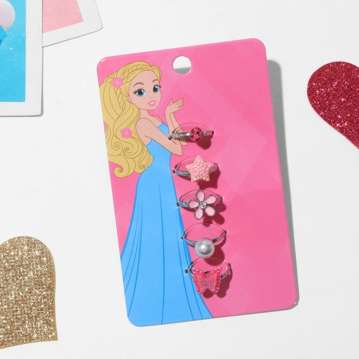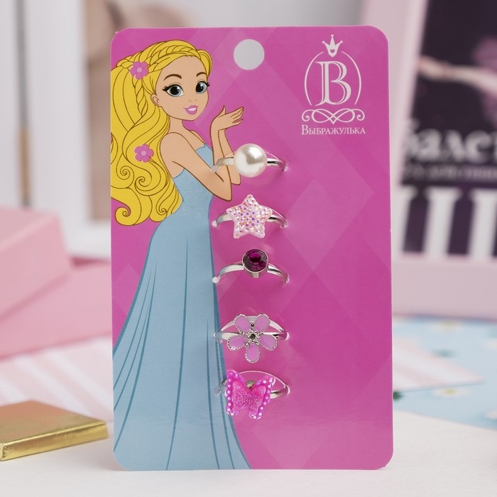 Кольцо детское «Выбражулька» ассорти для девочек, форма МИКС, цвет МИКС, безразмерное