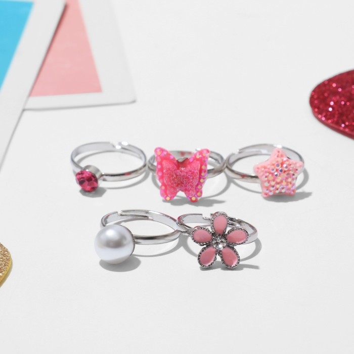 Набор детских колец «Выбражулька» красота, форма МИКС, цвет розовый